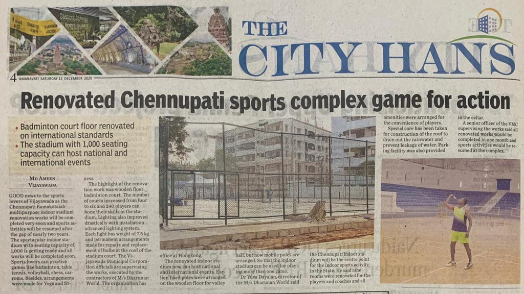 - Indoor Badminton Stadium 6 Courts with 1200 People Seating Capacity-Chennupati Ramakottai Stadium, Vijayawada
